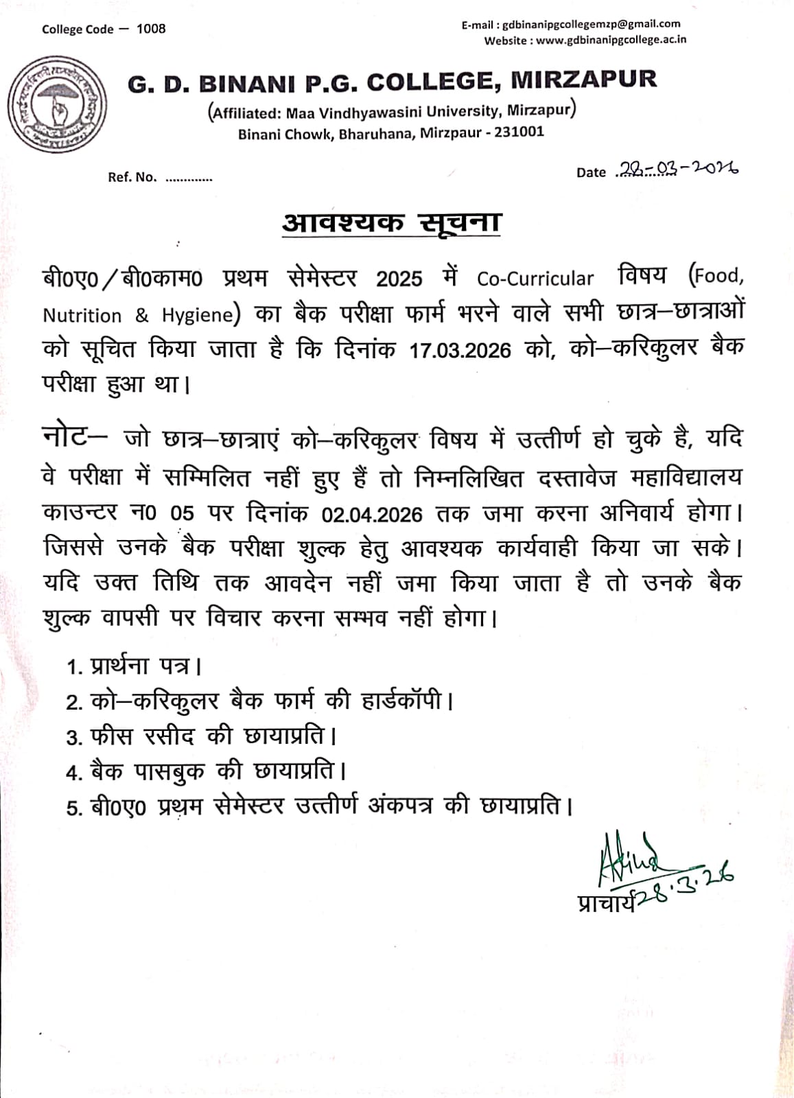 (Affiliated to Maa Vindhyavasini University, Mirzapur)
