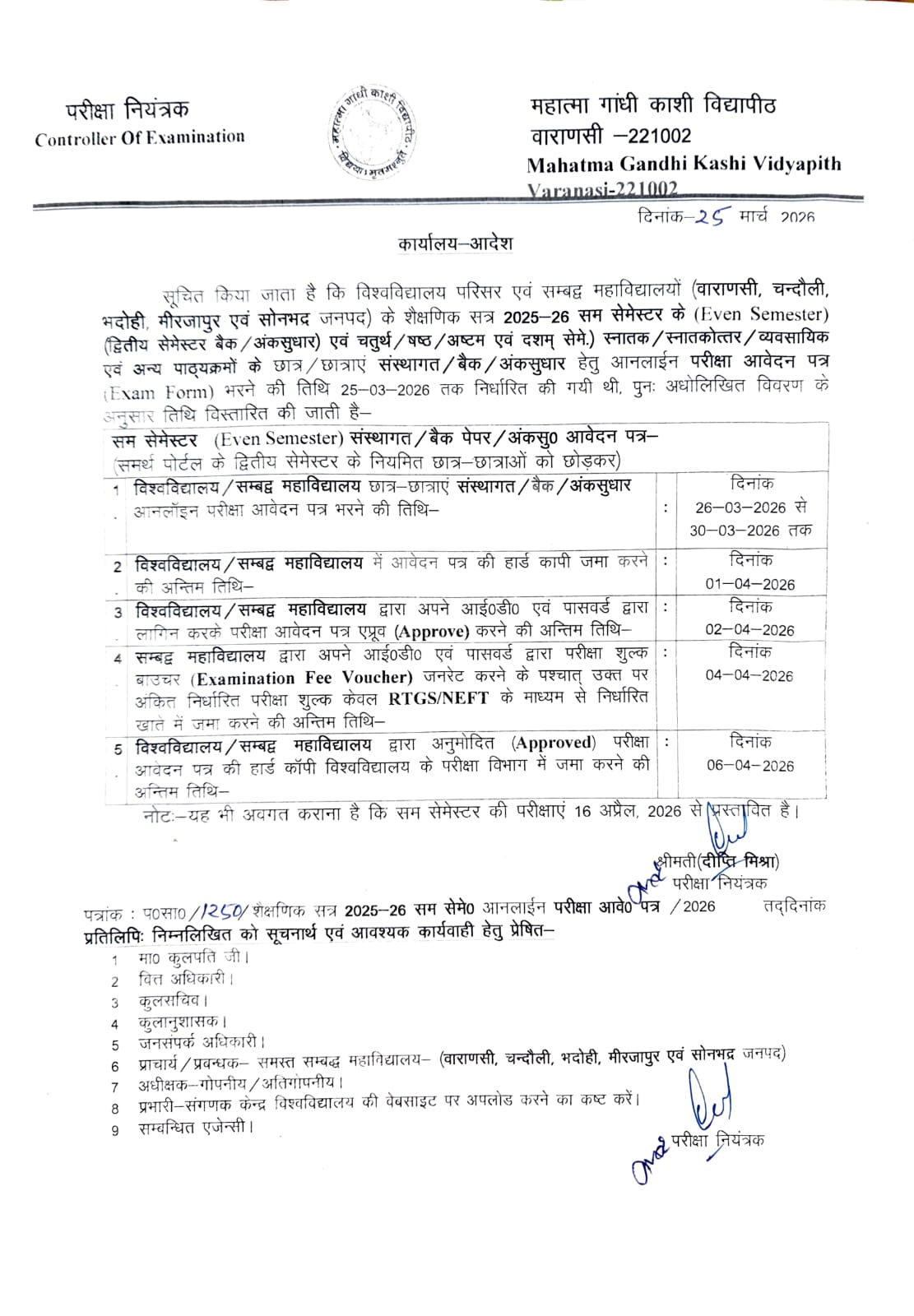 (Pre Affiliated to Mahatma Gandhi Kashi Vidyapith University, Varanasi)
