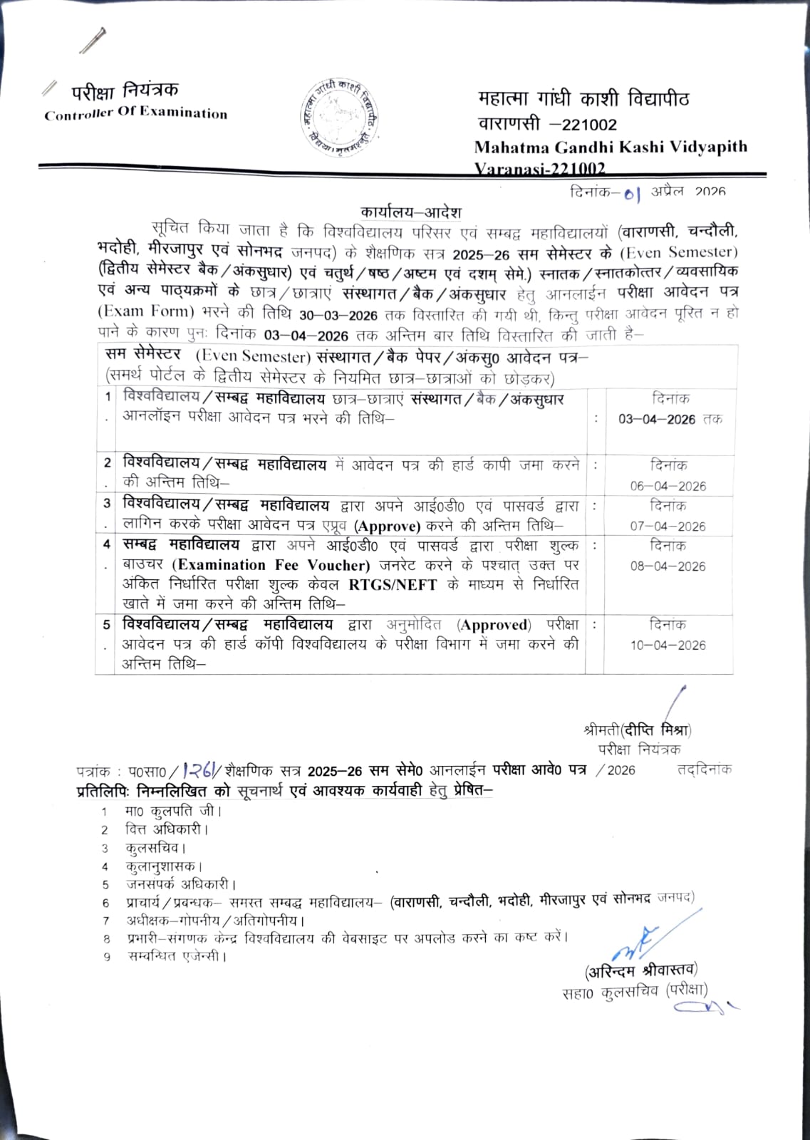 बी ए/बी कॉम- चतुर्थ एवं छठा सेमेस्टर परीक्षा फॉर्म तिथि विस्तारण 03-04-2026